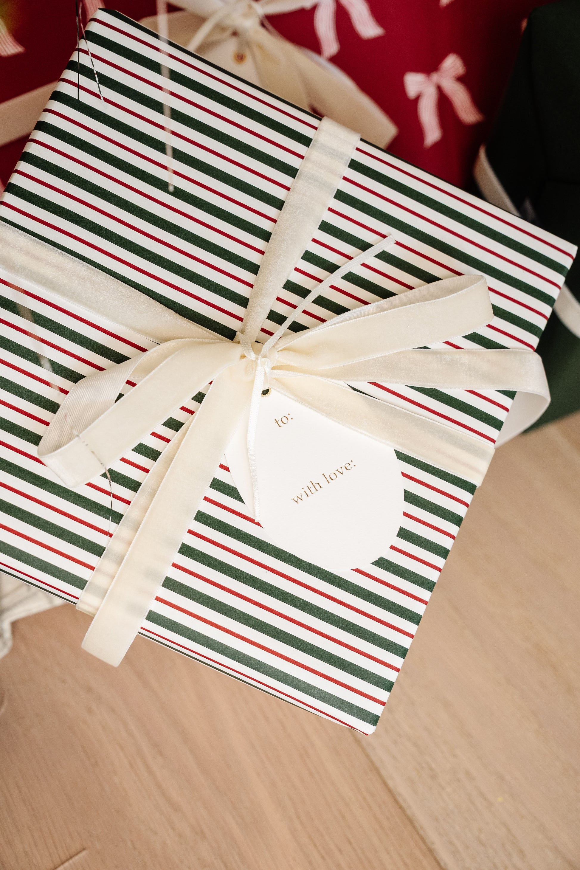 We believe every detail matters. Our matte paper is thick yet easy to fold, the ribbons are luxe and generous in length, and the letterpress tags are beautifully foiled. From start to finish, every piece of a Merry Market kit is made to feel as special as the gift inside.
