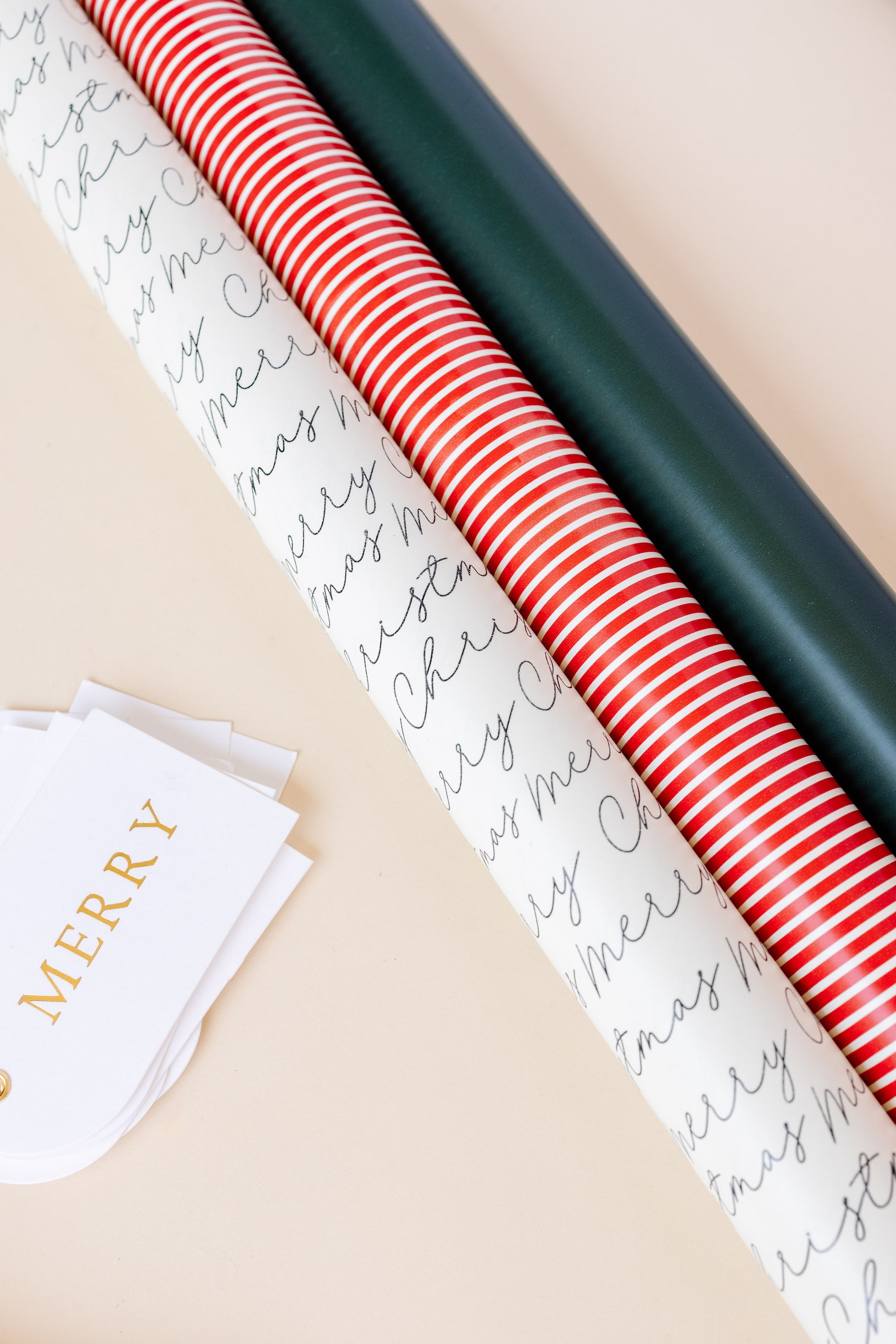 We believe every detail matters. Our matte paper is thick yet easy to fold, the ribbons are luxe and generous in length, and the letterpress tags are beautifully foiled. From start to finish, every piece of a Merry Market kit is made to feel as special as the gift inside.